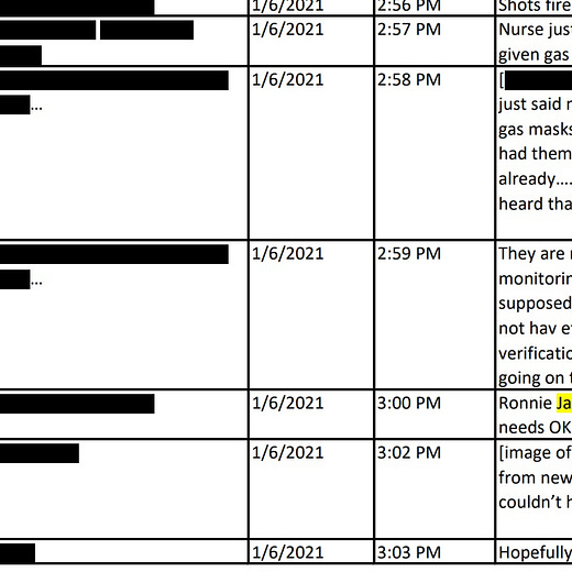 The motion is interesting because included in it were several hundred pages of exhibits, including dozens of pages of messages allegedly between many of the Oath Keepers and the Proud Boys. Messages indicate how closely the insurrectionists on the ground followed former president Trump’s Twitter feed—“there’s no better direct link from him than Twitter”—and offer extensive evidence that the attack on January 6 was planned in advance.