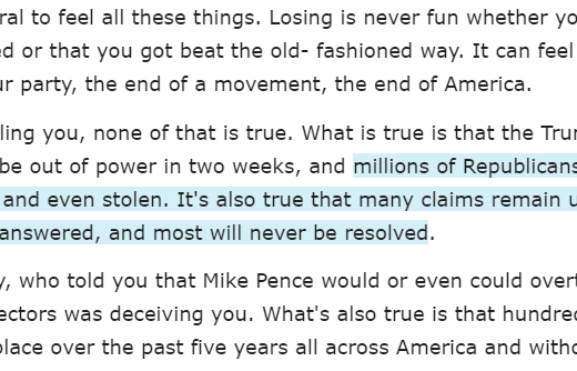 It seems to me that Meadows' sudden refusal to cooperate with the Jan. 6th Committee only lends credibility to the material he has submitted, such as that quoted by HCR above. It also seems his actions point to the probability that the material he now chooses to withhold is even more powerful evidence of an overt conspiracy to overthrow the US government, a coup d'etat, at the very least abetted by the president.