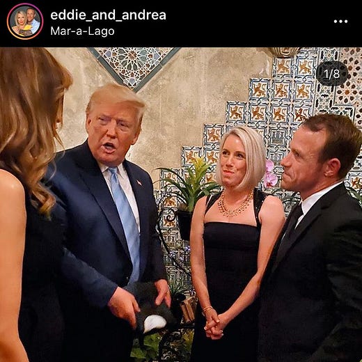 Finally, a picture posted on Instagram last night showed that Trump hosted Navy SEAL Eddie Gallagher at Mar-a-Lago. Gallagher was convicted of posing with the body of an ISIS captive, but Trump intervened before a review hearing to insist that Gallagher would retire with his rank as a SEAL intact. In the struggle over that order, Trump’s Defense Secretary, Mark Esper, fired Navy Secretary Richard Spencer, who objected to the short-circuiting of the hearing.