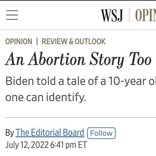 The only good news here for Republicans is that the outrage over these deleted (or lost) texts has distracted from the firestorm over the 10-year-old child from Ohio forced to travel to Indiana for an abortion after being raped. That story, reported by the doctor who performed the abortion, was picked up by national news and by President Joe Biden, who asked people to “imagine being that little girl” in a speech about abortion rights.