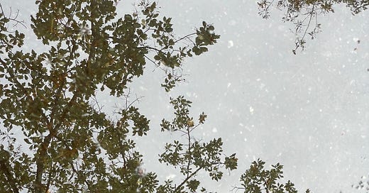 Stopping by her house for just such a walk had me standing in my friend's driveway a few days ago, where I caught this image in a puddle. I loved that it looked like a picture of a normal summer day... but it was reflected through rain.