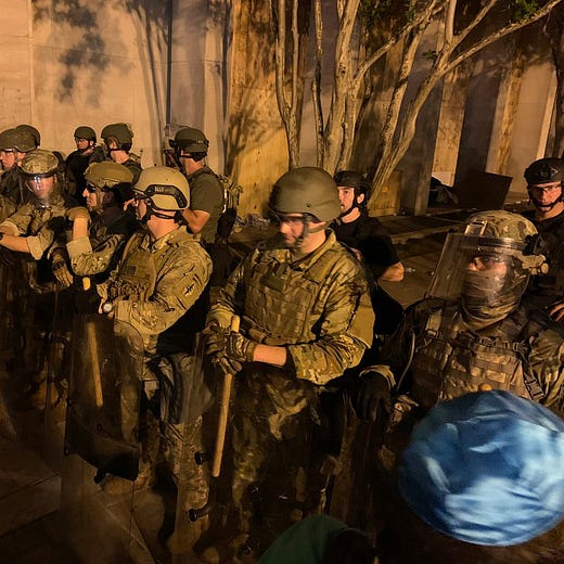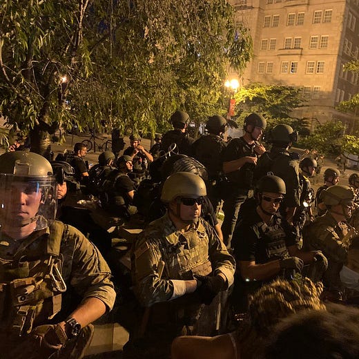 Their lack of name tags and insignia was also problematic. It hampers accountability-- how can you complain about the actions of an officer if you cannot identify him?-- and it blurs the lines between actual officers of the law and the men on the streets toting guns and demanding protesters answer to them. The use of unidentifiable police is common among authoritarian leaders.