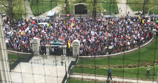 I mean, if the protesters really wanted to protect workers, wouldn't they be demanding laws that replaced lost wages? Other developed countries have passed exactly those sorts of measures, putting their economies into a holding pattern as the pandemic passes, but the Trump administration has focused largely on protecting those at the top of the economy. Reopening states will also keep us from expanding unemployment programs, since they will keep workers from being able to claim unemployment benefits. They must work or starve, as opponents of welfare legislation used to put it. And, of course, people are waiting too long to get medical care for Covid-19, and thus are spreading it, not simply because we have insufficient tests but also because they have no healthcare insurance for treatment anyway.