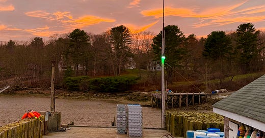 Picnic tables of tourists eating lobsters and clams have given way to lobstermen hauling their gear. Soon we’ll be locked down in snow and ice, and then it will all melt and it will be time to mend and paint and launch and do it all again.