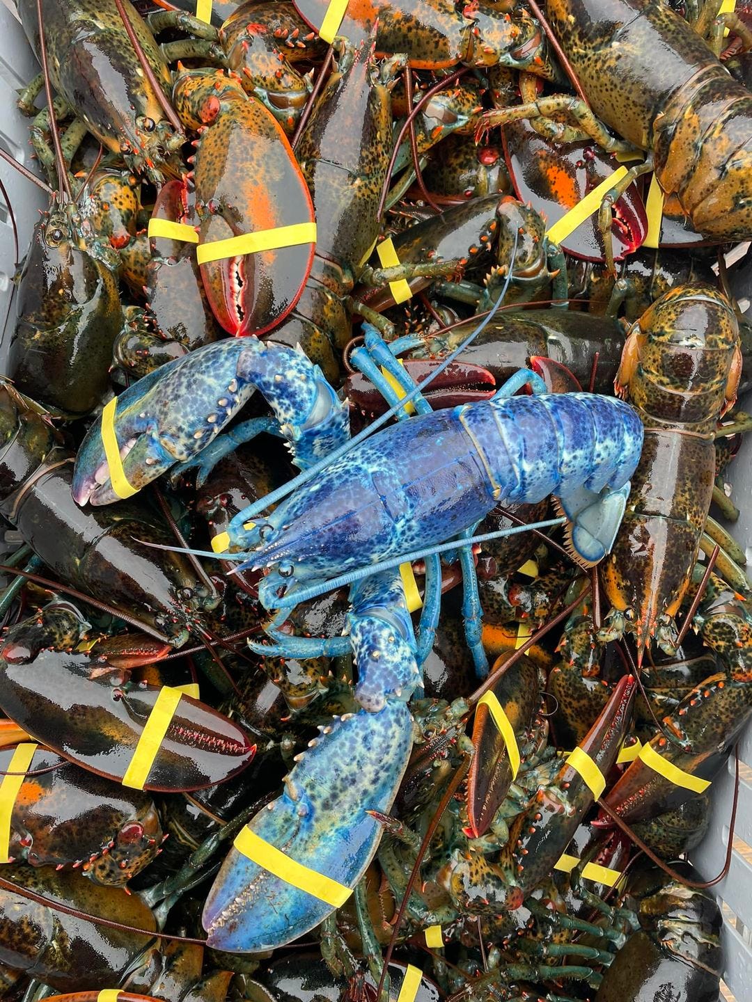 “ White — the rarest of all — at 1-in-100 million. Science tells us that blue lobsters are not just uncommon, but are in fact mutants. This is the result of a genetic mutation that causes the blue color. Blue lobsters are, in fact, the result of a single mutation of one piece of the SNA of American lobsters.”